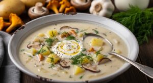 It combines tender chunks of potato, deeply savory mushrooms, and delicate herbs in a creamy, flavorful broth that’s both satisfying and nourishing.