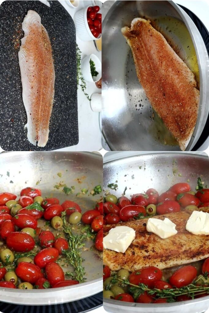 - Nestle the seared fillets on top of the tomato mixture. Dot with small pieces of butter.